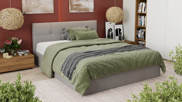 В конструкции кровати предусмотрен подъемный механизм и заглушина, состоящая из одной детали ДВП, которая располагается в изножье и не имеет крепление к каркасу кровати. Дно из ДВП поможет организовать место для хранения и сохранить порядок в кровати.