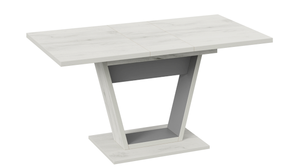 В оформлении новинки применяются актуальные варианты декора, что подчёркивает универсальность стола. Модные текстуры «Дуб крафт золотой», «Дуб крафт белый» в сочетании с цветами чёрный и серый графит, придадут ощущение тепла и уюта в кухонном интерьере.