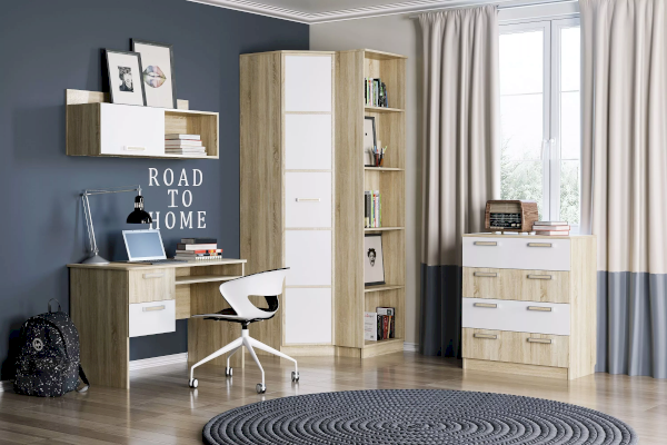 Комод «Фанк» - идеально подходит для обустройства комнаты подростка. Светлые тона мебели, выдержанный стиль прекрасно смотрятся в любом интерьере. Четыре удобных выдвижных ящика – это огромный объем для хранения белья, предметов одежды и аксессуаров. Выдвижные ящики оснащены шариковыми направляющими полного выдвижения, равномерно распределяют вес содержимого и обеспечивают плавный бесшумный ход ящика. Комод отлично сочетается с другими моделями коллекции «Фанк».