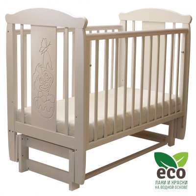 варианты цветовых решений Кроватка "Соня 05" имеет механизм качания продольный маятник. Механизм качания фиксируется. Возможен вариант кровати с ящиком.