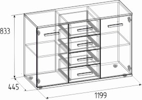 Стильная Норвуд 5 Тумба МЦН отвечает требованиям скандинавского стиля. Яркие акценты тумбы - контрастные горизонтальные детали толщиной 22 мм и фасад верхнего ящика в декоре Орех Шоколадный. Четыре выдвижных ящика на шариковых направляющих, две распашные дверцы по бокам легко и удобно открываются за светлые ручки из массива. Регулируемые опоры компенсируют неровности пола.