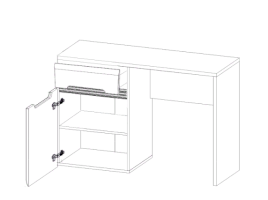 Одна сторона оборудована тумбой с выдвижным ящиком и нишей с распашной дверью.
