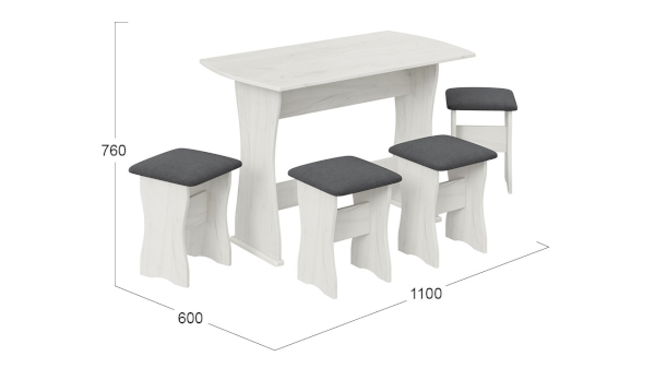 Обеденная группа Тип 1 – это комплект, состоящий из стола и табуретов, изготовленный в одном стилистическом решении. Классический дизайн, доступная цена и разнообразие расцветок набора позволяют приобрести подходящую модель для помещения, оформленного в любом стиле.