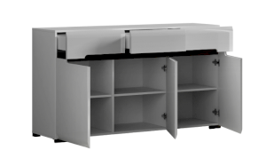 Для открывания выдвижных элементов используется фрезеровка на боковой кромке ящиков