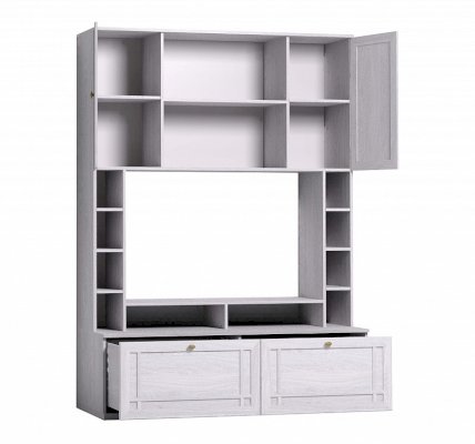 Легкие рамочные фасады модулей коллекции SHERLOCK декорированы переплетом из МДФ, что дополнительно подчеркивает строгость форм и классический стиль коллекции. Легкий и небольшой по габаритам Шкаф МЦН 1 вмещает телевизор диагональю до 44”: высота ниши 725 мм, ширина - 1154 мм. В боковых стеллажах храните декоративные интерьерные мелочи. Глубина нижних выдвижных ящиков - 400 мм. Они комплектуются шариковыми направляющими, которые обеспечивают им минимальный люфт и высокую прочность. Один ящик выдерживает нагрузку до 20 кг. Подставку Sherlock 17 можно закрепить над нишей, как дополнительные вместительные полки.