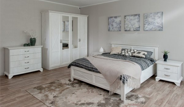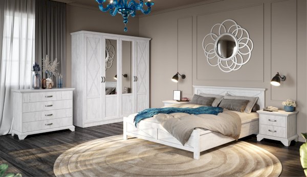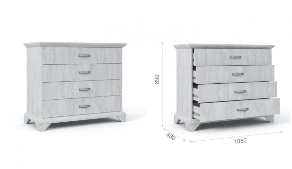 Вместительный комод Лорена в стиле неоклассика создает уютную атмосферу в интерьере гостиной или спальни. Белые фасады с фактурой и рисунком натурального дерева наполняют комнату светом, делают ее просторнее. Металлические ручки цвета состаренного серебра придают изысканность, а фигурные ножки и декоративный профиль крышки подчеркивают стилистику коллекции. В выдвижных ящиках на телескопических направляющих удобно хранить любые предметы одежды и личные вещи. Выполнен из экологичных материалов.