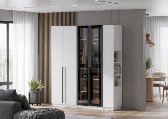 Ручка: лицевая фурнитура отсутствует. На ящиках установлена система открывания PUSH-TO-OPEN. Распашной фасад открывается с помощью захвата рукой.
