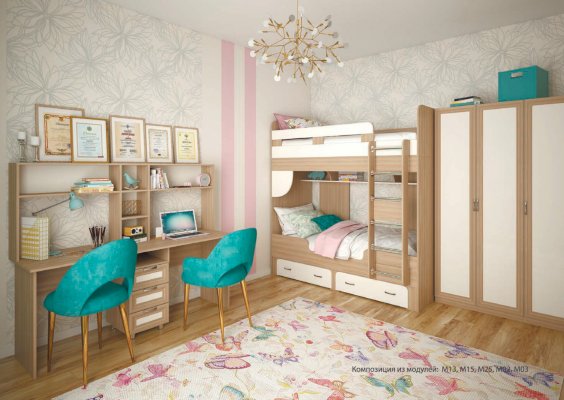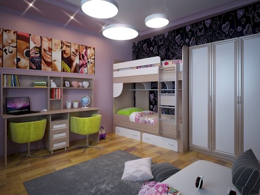 2. Есть модули для функционального обустройства комнаты двоих детей - подростков.