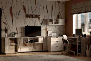 Компактный навесной шкафчик с открытыми и закрытыми нишами - удобный способ настенного хранения самых разных вещей. Такую навесную полку рекомендуем использовать как функциональную надстройку для тетрадей, книг и учебников над письменными столами Флекс 15 и 115 или над комодом Флекс 6. Полка навесная собирается как на левую, так и на правую сторону.