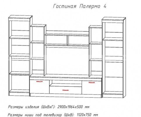 Ниша под ТВ (ШхВ): 1120х750 мм