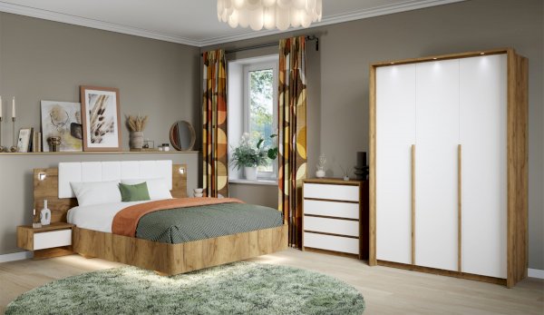 «Мишель» – это современная кровать в актуальных природных цветах с оригинальной конструкцией основания, которое в сочетании с подсветкой создает «эффект парения». Накладные светильники в комбинированном изголовье и подсветка по его периметру дают дополнительное освещение в ночное время, а мягкая накладка с вертикальной отстрочкой комфортно поддерживает спину во время отдыха.