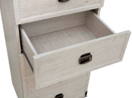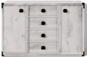 Оригинальный дизайн фасада, точно повторяющий текстуру отполированного дерева отлично впишется в современный интерьер. Дополняет общую композицию необыкновенная форма ручек и закругленные металлические края элементов мебели. В коллекцию Indiana входит большой ассортимент элементов мебели, который поможет создать интересный интерьер в комнате.