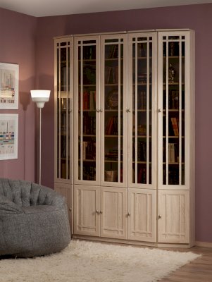 Благодаря модульности, библиотеку SHERLOCK можно расположить в Вашем домашнем кабинете, выбрав для компоновки именно те модули, которые Вам нужны. Письменный стол, расположенный у окна, сделает чтение и работу с документами максимально комфортным. В высоких изящных шкафах библиотеки SHERLOCK поместятся книги любого формата: от самых маленьких книг до больших иллюстрированных альбомов, поскольку Вы сами можете регулировать высоту полок. Тонированные стекла фасадов высоких книжных шкафов защитят книги от прямых солнечных лучей, пожелтения страниц, пыли и позволят без проблем найти нужную книгу.